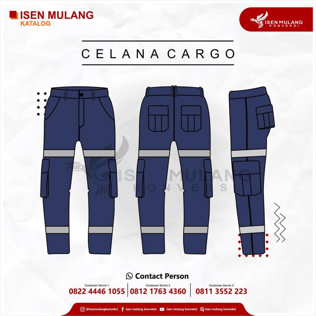 Di atas adalah penjelasan tentang bahan bahan yang biasa dipakai untuk celana cargo. sudah cukup jelas, kan? mungkin setelah membaca ini, kalian ingin membuat celana cargo sendiri? jagonya bikin seragam bisa membantu kalian, loh! isen mulang adalah jasa konveksi yang mencakup jasa jahit dan jasa sablon.kami siap menjadi vendor terpercaya kalian. Punya pertanyaan dan tertarik membuat pakaian di isen mulang konveksi ? Langsung saja menghubungi Customer Servis di bawah ini :